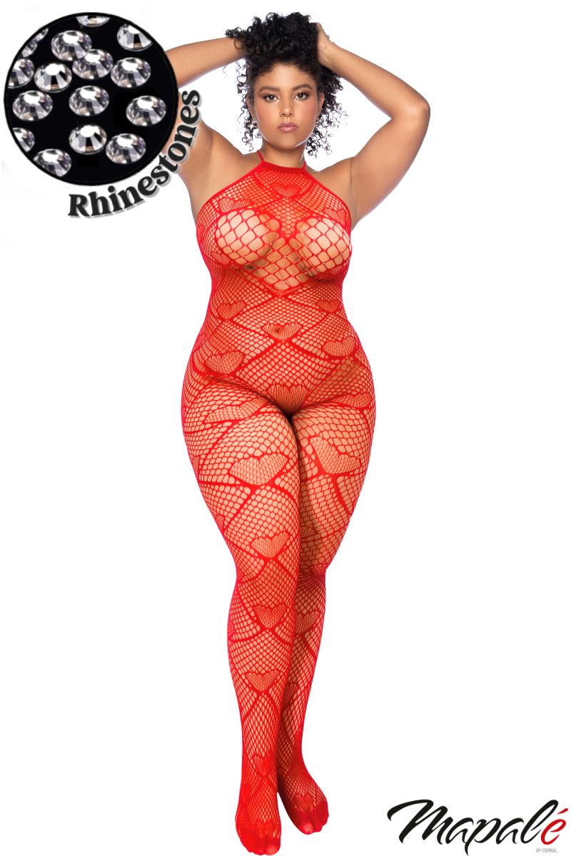 - Heart Fishnet Bodystocking With Rhinestone Detail