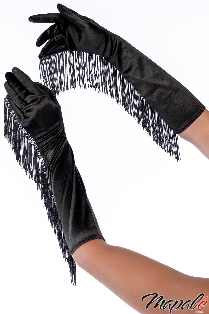 •           Satin opera-length Gloves with long fringes